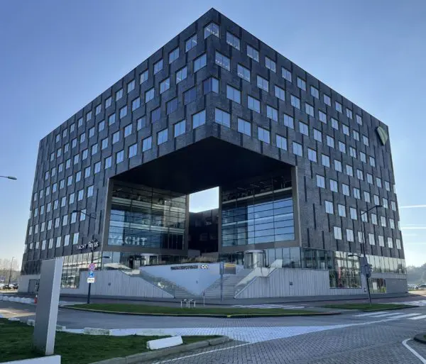 Gebruik hoofdingang (Airport zijde) en de linker trap (waar Regus op de gevel staat), wij zitten op de 4de etage.