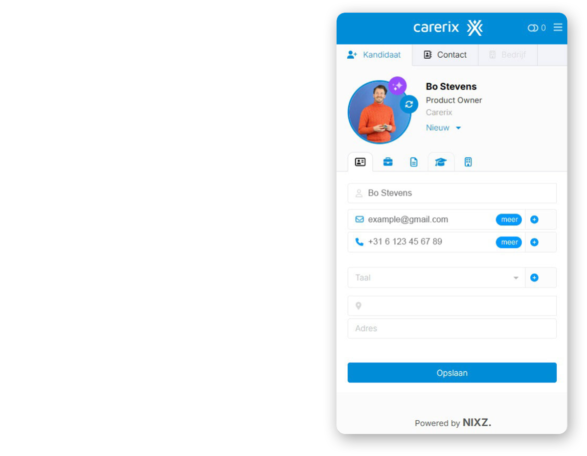 Naast Carerix werk je ongetwijfeld ook met LinkedIn als hulpmiddel voor actieve sourcing. Met onze LinkedIn integratie heb je op beide plekken alle relevante informatie om tot een volgende actie te komen. Je herkent op LinkedIn of een kandidaat al bekend is in jouw Carerix applicatie. Zo niet, dan voeg je ze toe aan jouw database of update met slechts één klik. Zie of een kandidaat op LinkedIn al aan een vacature is gematcht of match het profiel aan een vacature in Carerix zonder LinkedIn te verlaten. Voeg notities toe aan een kandidaat of contactpersoon terwijl je ze op LinkedIn bekijkt. Vanuit de LinkedIn Browser open je direct bestaande kandidaten in jouw Carerix applicatie.